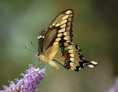 My butterfly and moth book indicates that this is a Giant Swallowtail. It certainly was pretty giant in person, yes indeed.
